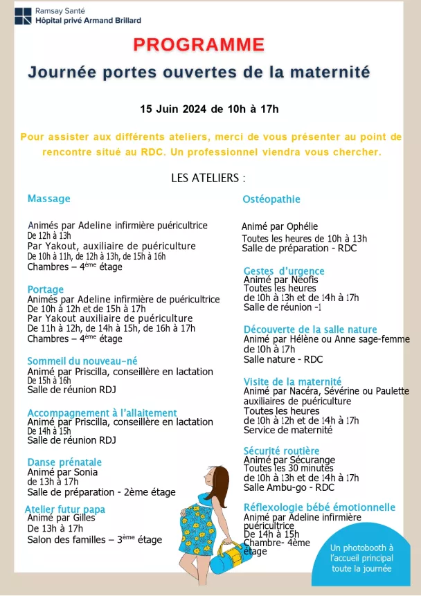 Actualités Journée portes ouvertes de ma maternité - 2024 le 21/05/2024 Journée portes ouvertes Retour Télécharger le PDF Programme des ateliers tout au long de la journée