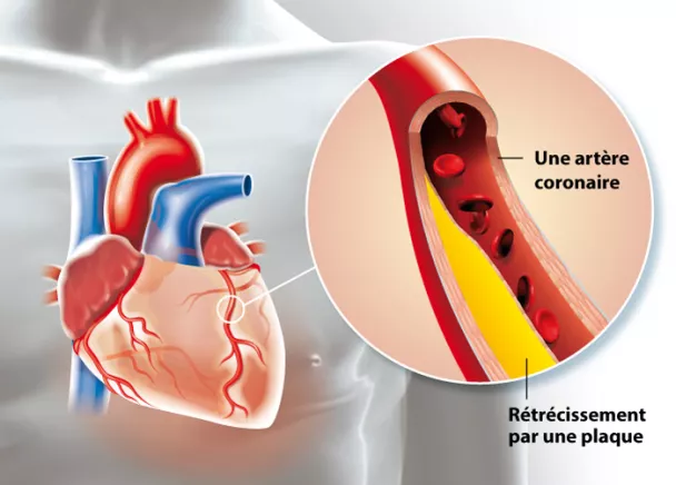 L’angine de poitrine (également appelée angor) est une douleur dans la poitrine. Elle témoigne d’une irrigation insuffisante (ischémie) d’une partie du muscle cardiaque (myocarde), liée, dans la plupart des cas, à un rétrécissement (sténose) d’une des trois artères nourricières du cœur (coronaires) par une plaque d’athérome.
