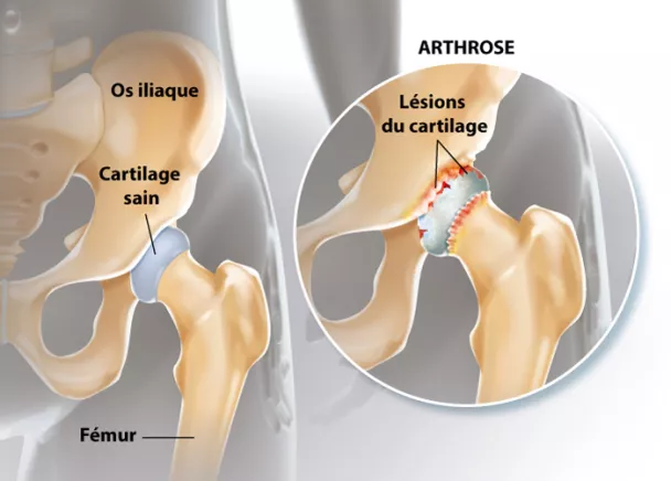 L’arthrose de la hanche est liée à une dégénérescence de ce cartilage.