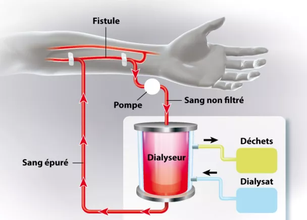 L’hémodialyse permet d’éliminer à la fois les déchets et l’eau.