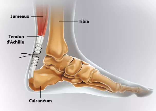 Deux techniques existent : chirurgie classique avec ouverture de la peau sur quelques centimètres pour recoudre les deux parties du tendon, ou traitement dit « percutané » (passage des aiguilles et du fil de suture grâce à deux petites incisions à la cheville).